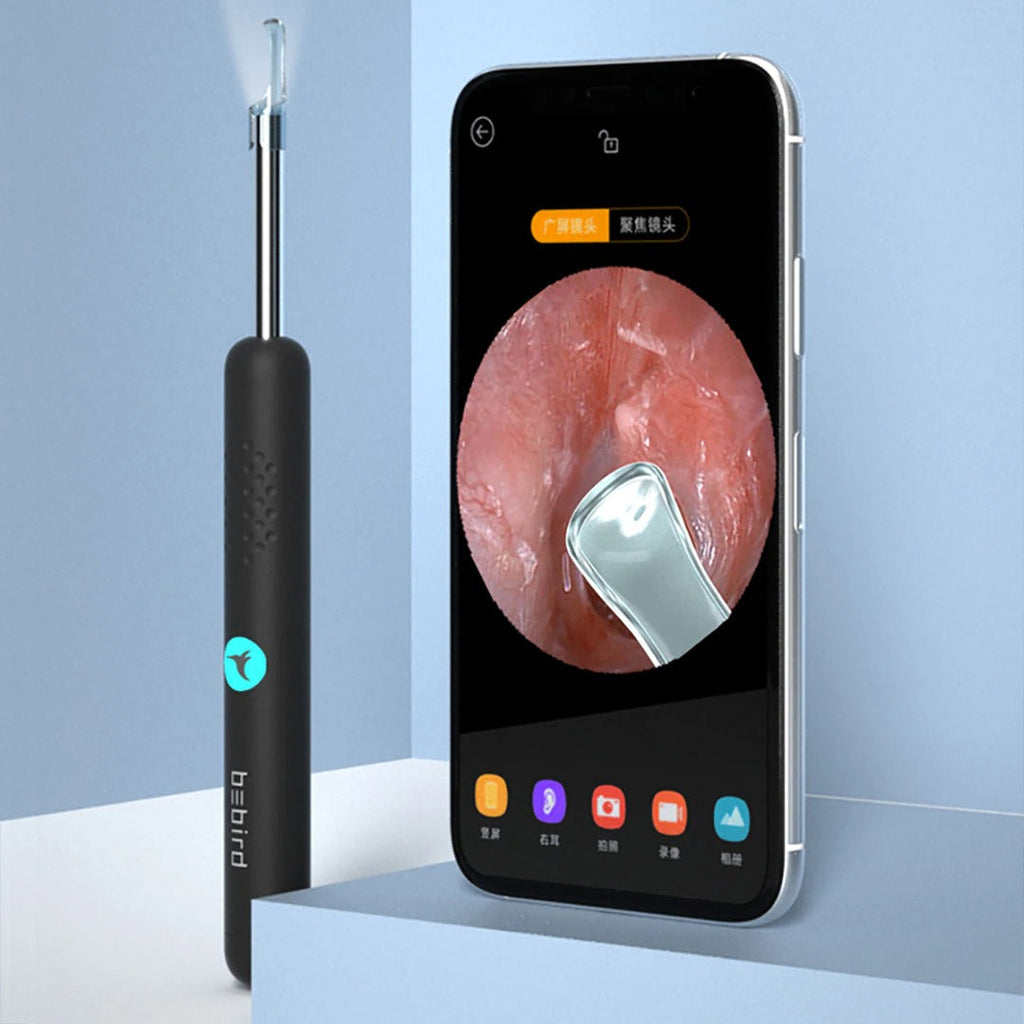 Endoscópio manual para limpeza do canal auricular, mas pode ser usado para ampliar qualquer cavidade corporal, como nariz e boca.