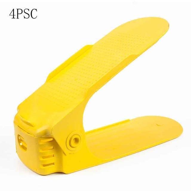 Esse organizador de sapatos são feitos de um material plástico de boa qualidade, durável e suficiente para suportar o seu par de sapatos. O design flexível fornece um espaço para um sapato em cima e outro em baixo. Você pode economizar mais espaço se decidir obter mais de um conjunto desses suportes de sapato fantásticos.
